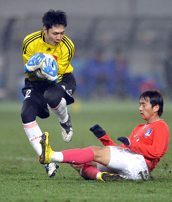 2月10日晚18:15,中國男足國家隊迎來了東亞四強賽第二場與韓國隊的比賽,憑借著于海、郜林和鄧卓翔的進球,國足3:0完勝韓國,讓“恐韓癥”成為歷史。圖片來源:中國新聞網(wǎng)