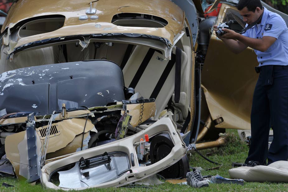當(dāng)?shù)貢r間2月10日上午,巴西記錄電視臺的一架直升機在巴西圣保羅南部一賽馬俱樂部的草坪上墜落,一名飛行員當(dāng)場身亡。圖片來源:中國新聞網(wǎng)