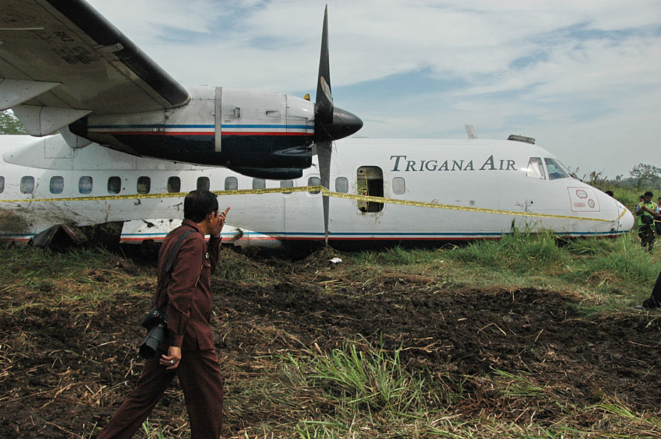 印尼當(dāng)?shù)貢r(shí)間2月11日,印尼一架客機(jī)成功迫降婆羅洲島的一片稻田,機(jī)上47名乘客和5名機(jī)組人員除兩人腿部骨折外,其他人均安然無恙。圖片來源:中國新聞網(wǎng)