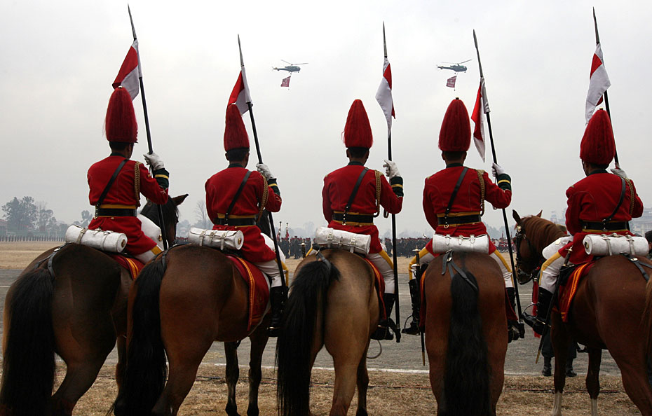 當(dāng)?shù)貢r間2月12日,尼泊爾士兵在首都加德滿都舉行了建軍節(jié)閱兵式。尼泊爾總統(tǒng)和總參謀長檢閱了受閱部隊。圖片來源:中國新聞網(wǎng)