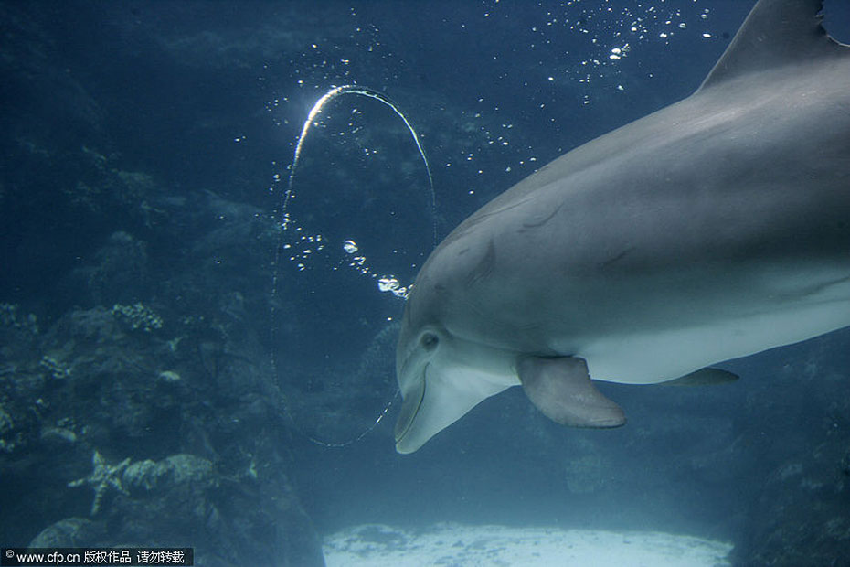 近日,美國(guó)奧蘭多海洋世界的一只寬吻海豚吹出“心形”氣泡,似乎要在情人節(jié)來臨前夕傳達(dá)濃濃愛意。圖片來源:CFP
