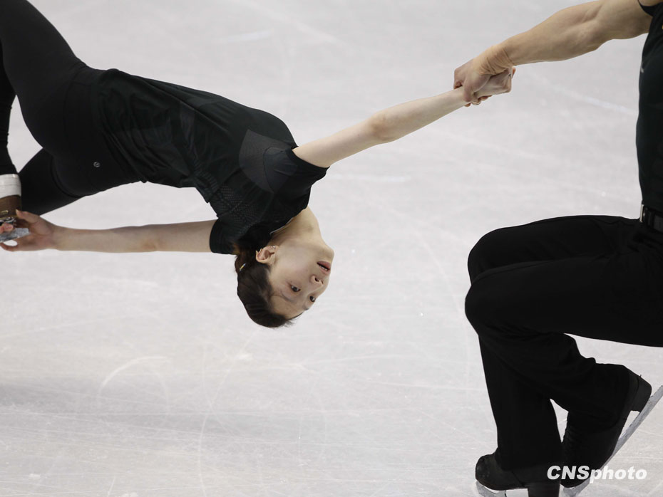當(dāng)?shù)貢r間2月13日,中國花樣滑冰隊龐清/佟健、張丹/張昊在溫哥華太平洋體育館,利用最后的休息時間重復(fù)練習(xí)積極備戰(zhàn)即將到來的比賽。中新社記者 盛佳鵬 攝