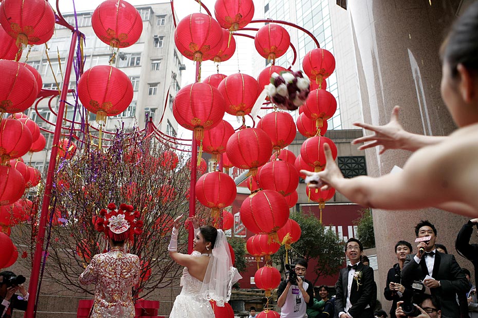 圖為香港市民在正月初一大婚,雙喜臨門。