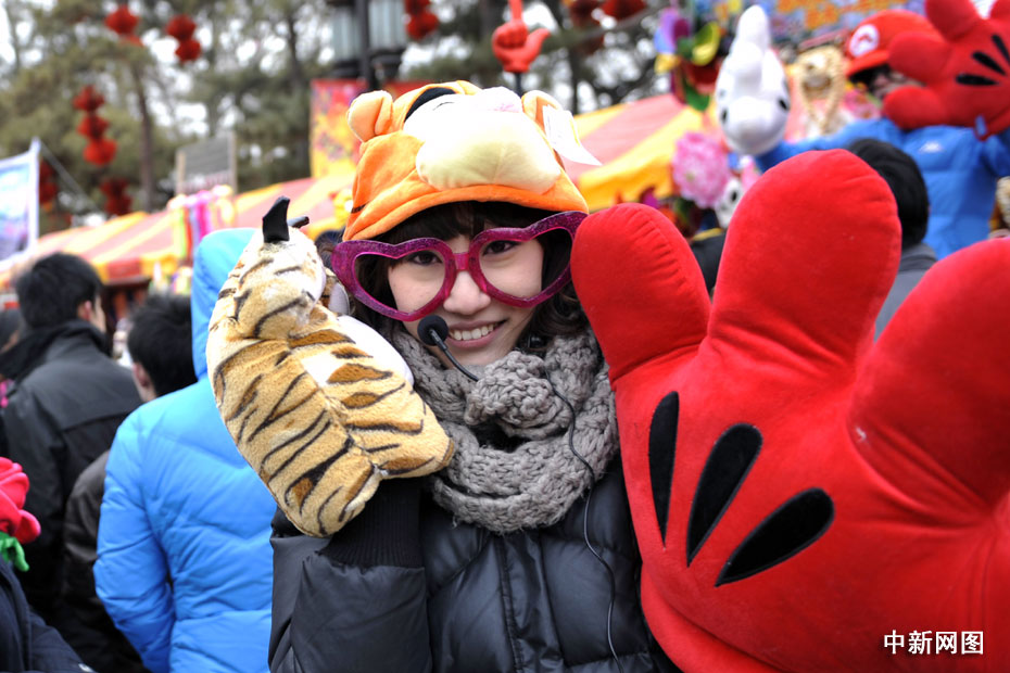 2月14日,農(nóng)歷正月初一,北京各大傳統(tǒng)廟會(huì)、洋廟會(huì)爭(zhēng)相開(kāi)幕,許多游客頭戴虎年飾品開(kāi)心游廟會(huì)。中新網(wǎng)記者 金碩 攝