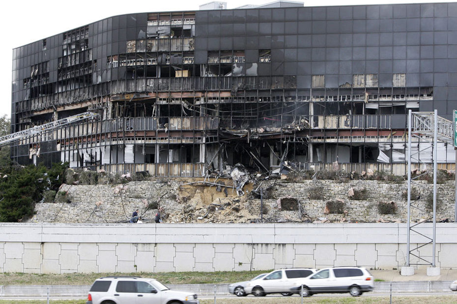 一架低空飛行的小型飛機(jī)18日撞入德克薩斯州奧斯汀市國稅局的辦公大樓,當(dāng)?shù)毓賳T表示這可能是一件蓄謀事件。圖片來源:中國新聞網(wǎng)