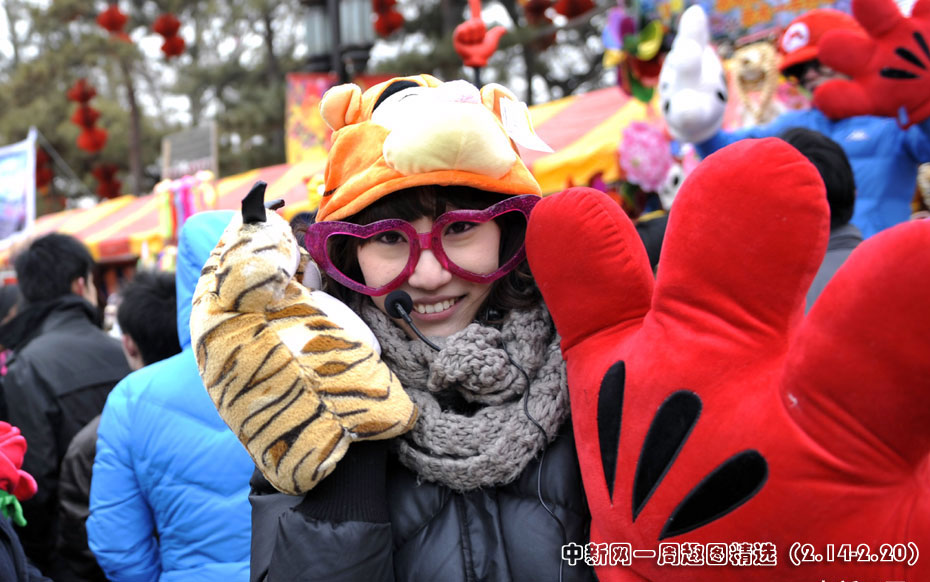2月14日,農(nóng)歷正月初一,北京各大傳統(tǒng)廟會、洋廟會爭相開幕,許多游客頭戴虎年飾品開心游廟會。圖片來源:中國新聞網(wǎng)>>點擊觀看詳細(xì)內(nèi)容