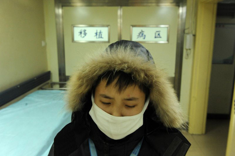 圖為準備回家的邵帥經過母親所在病房時顯得特別的疲憊。朱嘉磊/CFP