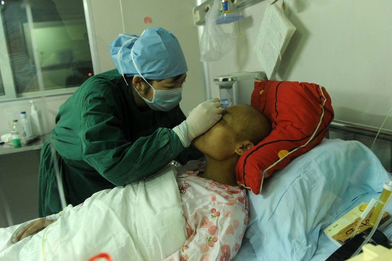 圖為病房內(nèi)邵帥的母親被護士照料。朱嘉磊/CFP