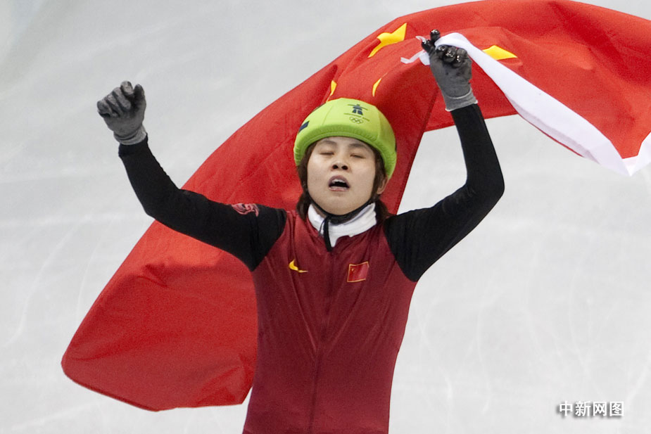 北京時(shí)間27日中午,中國選手王濛在2010年溫哥華冬奧會短道速滑女子1000米的決賽中摘得金牌。圖片來源:中國新聞網(wǎng)
