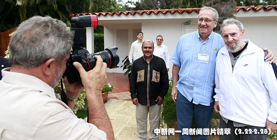 24日(周三),在古巴哈瓦那,巴西總統(tǒng)盧拉手持相機為巴西交通部部長和前古巴領袖卡斯特羅(Fidel Castro)拍照。