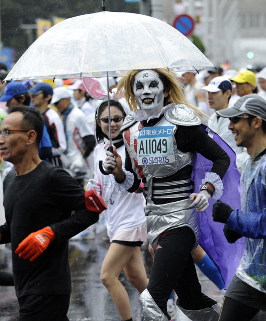 2月28日,日本東京馬拉松賽舉行,超過(guò)30000名愛(ài)好者參加了此次馬拉松賽。很多參賽者的怪異服裝成為了賽場(chǎng)上的一道風(fēng)景。圖片來(lái)源:中國(guó)新聞網(wǎng)