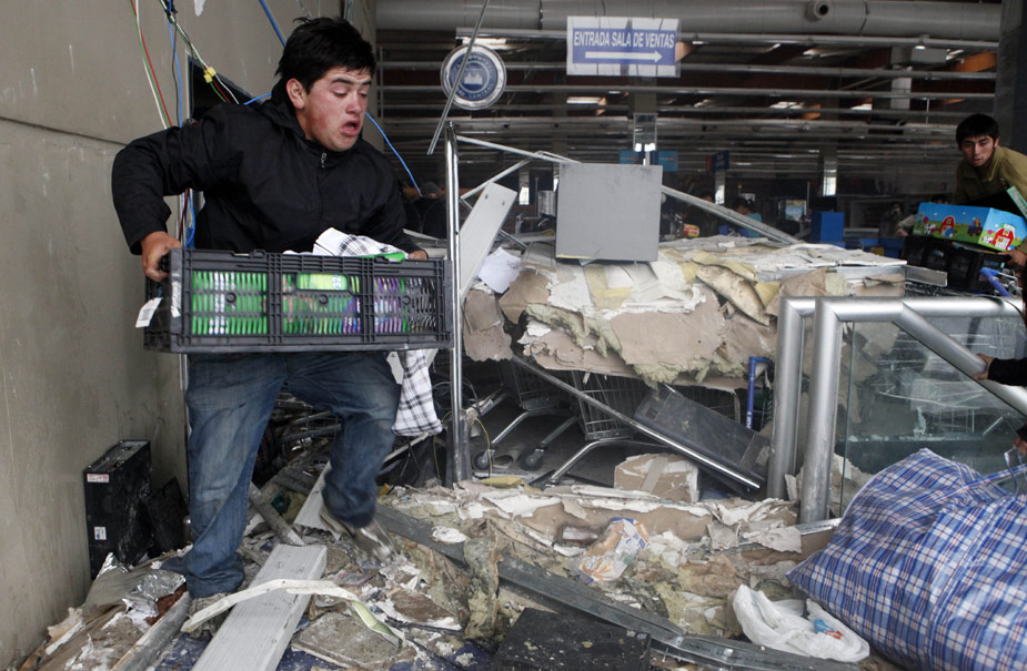 2月27日凌晨,智利發(fā)生了8.8級強烈地震。28日,智利康塞普西翁市,數(shù)百人對當?shù)貎杉覀}庫進行洗劫?等瘴魑淌惺虚L表示,目前情況非常復雜,“開始失控”,災民非常脆弱。