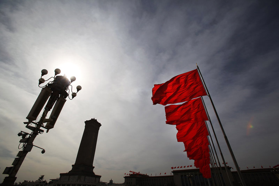 北京,兩會即將開幕,各項(xiàng)準(zhǔn)備工作就緒。天安門廣場紅旗招展。Feng Li 攝