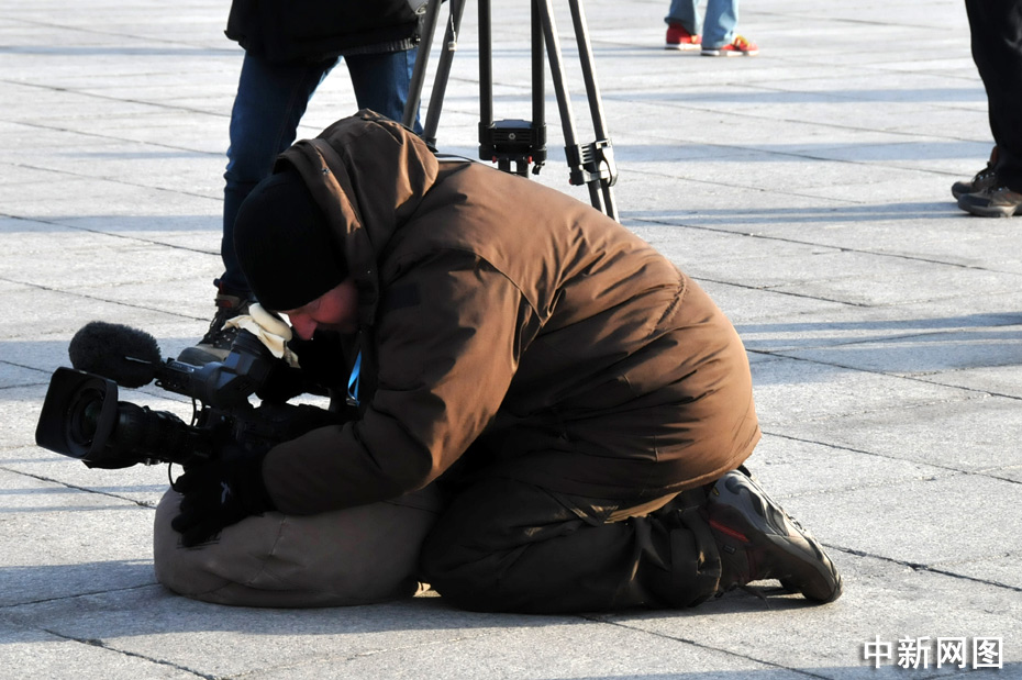 3月5日上午9時(shí),十一屆全國(guó)人大三次會(huì)議在北京隆重開幕。國(guó)務(wù)院總理溫家寶作政府工作報(bào)告。圖為人民大會(huì)堂前等待采訪的記者。中新網(wǎng)記者 吳歆攝