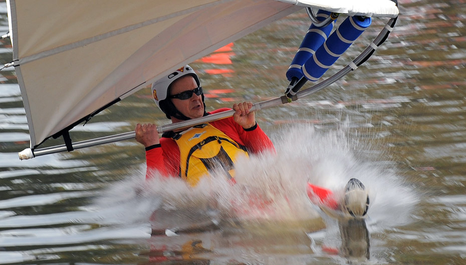 當(dāng)?shù)貢r(shí)間3月7日,澳大利亞墨爾本舉行一年一度的“鳥人”大賽上,參賽者帶著自己的無(wú)動(dòng)力“翅膀”飛身躍向水面。圖片來(lái)源:中國(guó)新聞網(wǎng)