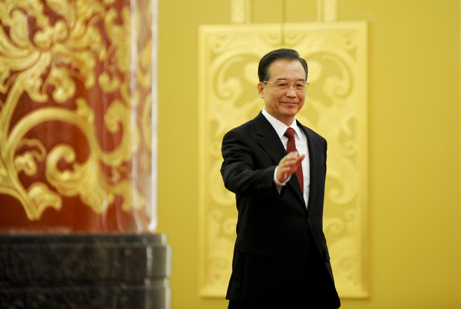 3月14日上午,國(guó)務(wù)院總理溫家寶在人民大會(huì)堂三樓金色大廳與采訪十一屆全國(guó)人大三次會(huì)議的中外記者見(jiàn)面并回答記者提出的問(wèn)題。溫家寶總理闊步走進(jìn)金色大廳。中新社記者 廖攀 攝 圖片來(lái)源:中國(guó)新聞網(wǎng)
