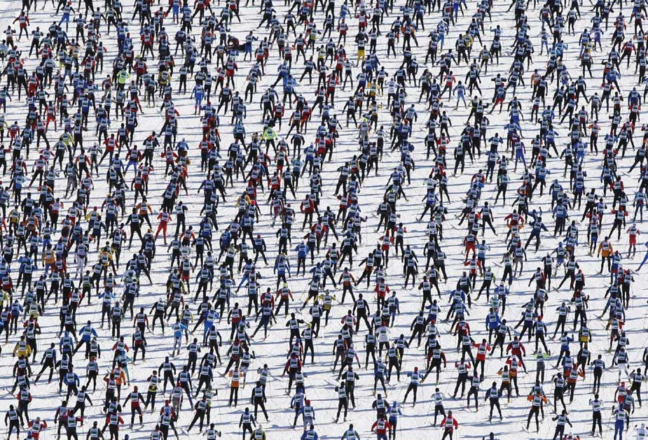 3月14日,瑞士圣-莫里茨附近舉行了全長(zhǎng)26.2英里的滑雪馬拉松比賽,大概11200人參加了此次比賽。