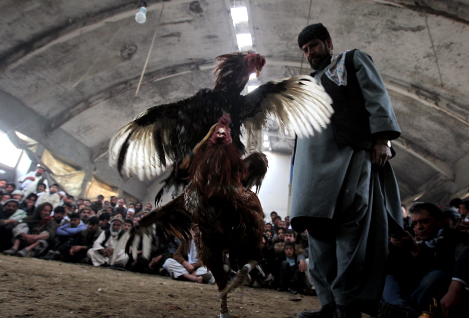 當(dāng)?shù)貢r間3月12日,在阿富汗首都喀布爾,觀眾們正在觀看傳統(tǒng)的斗雞比賽。圖片來源:中國新聞網(wǎng)