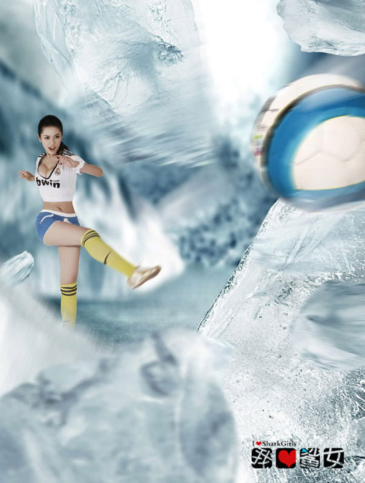 靚模潘霜霜最近拍攝了一組身穿皇馬足球隊(duì)8號隊(duì)服的性感寫真,其中包括在場上模仿C羅踩單車過人,最后被踢傷和踢碎玻璃的表情。潘霜霜現(xiàn)已簽約保利博納,正式進(jìn)軍電影圈。圖片來源:中國新聞網(wǎng)
