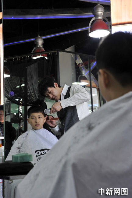 3月17日,北京,一個小朋友在一家美發(fā)店理發(fā)。中新網記者 金碩 攝