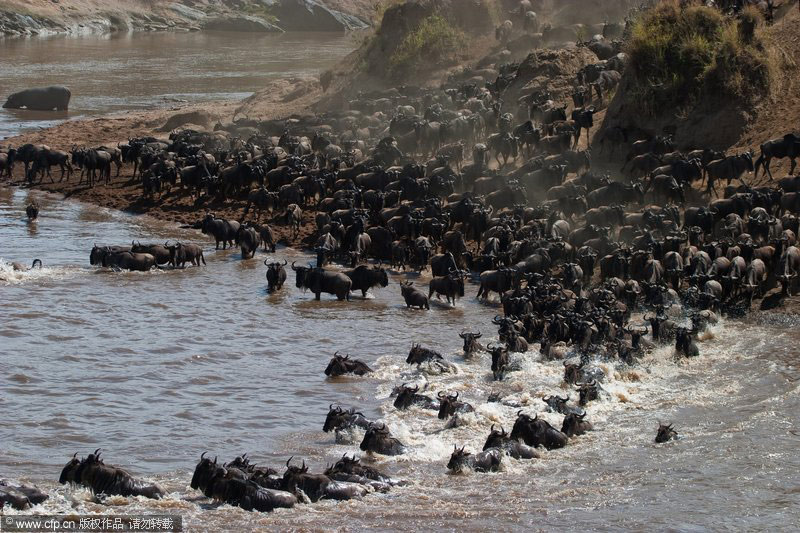 3月17日消息,捷克野生動物攝影師瓦拉夫·希爾哈(Vaclav Silha)在肯尼亞馬賽瑪拉(Masai Mara)國家保護(hù)區(qū)拍到了罕見的牛羚大遷移場面。上百萬牛羚集體穿越馬拉河,同時(shí)為了防止被水中的鱷魚咬到及逃避岸邊叢林里的老虎,牛羚群制造出巨大的聲響并急沖到對岸。barcroftmedia/CFP