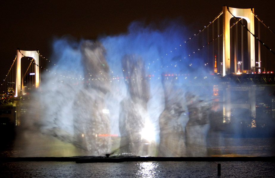 3月19日晚,在日本東京灣上演了一場美輪美奐的“海上幻燈”。東京灣的噴泉噴射出長60米、高23米的各種海洋生物的畫面,令人驚嘆。