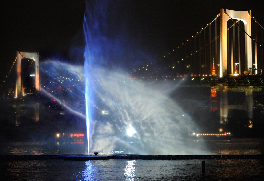 3月19日晚,在日本東京灣上演了一場美輪美奐的“海上幻燈”。東京灣的噴泉噴射出長60米、高23米的各種海洋生物的畫面,令人驚嘆。