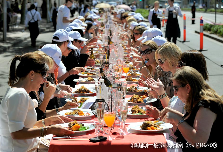 近日,澳大利亞墨爾本,人們在號稱“世界上最長的午餐”活動中享受美味佳肴。圖片來源:中國新聞網(wǎng)>>點擊觀看詳細(xì)內(nèi)容
