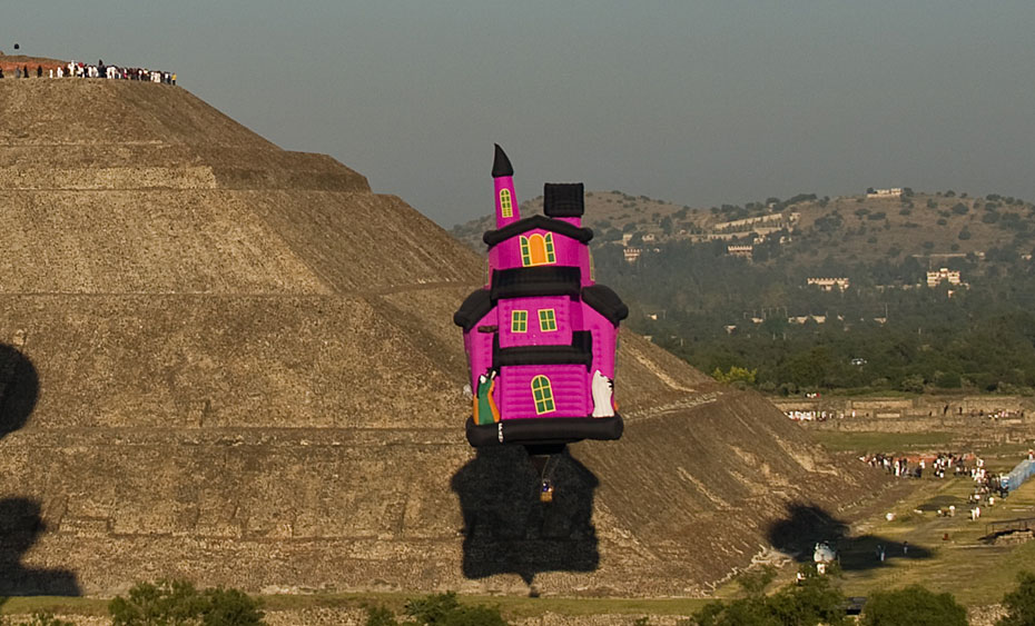 當(dāng)?shù)貢r(shí)間3月21日,熱氣球從墨西哥特奧蒂瓦坎上空飛過。墨西哥近日在特奧蒂瓦坎附近舉行熱氣球節(jié)迎接春分的到來。圖片來源:中國新聞網(wǎng)