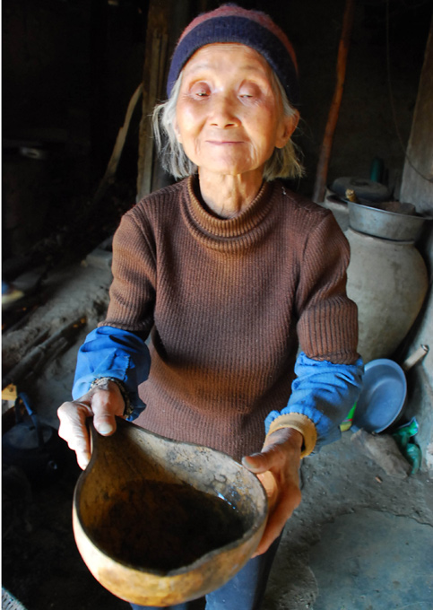3月21日四川攀枝花仁和區(qū)87歲的施蘭英對(duì)著鏡頭說(shuō),“這是我一天的水”。中新社發(fā) 劉忠俊 攝