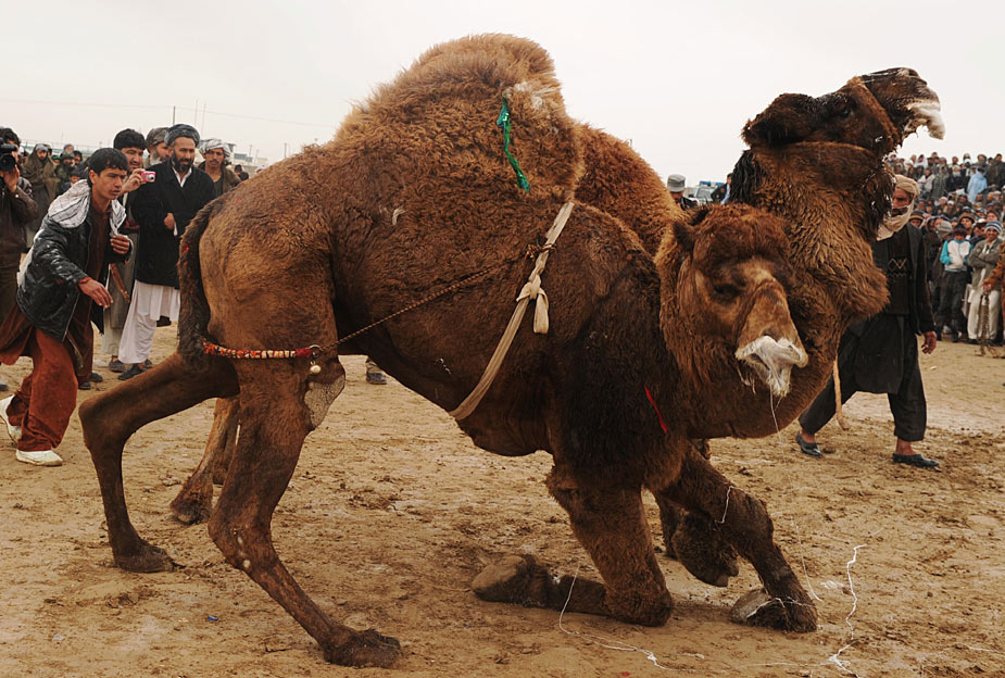 3月22日,阿富汗舉行傳統(tǒng)的都駱駝大賽慶祝阿富汗新年。斗駱駝在阿富汗是一項(xiàng)頗受民眾喜歡的運(yùn)動(dòng)。