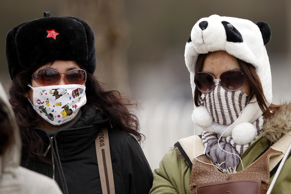 22日,北京遭遇今春第二場沙塵暴侵襲,街頭行人“全副武裝”應對。盛佳鵬 攝