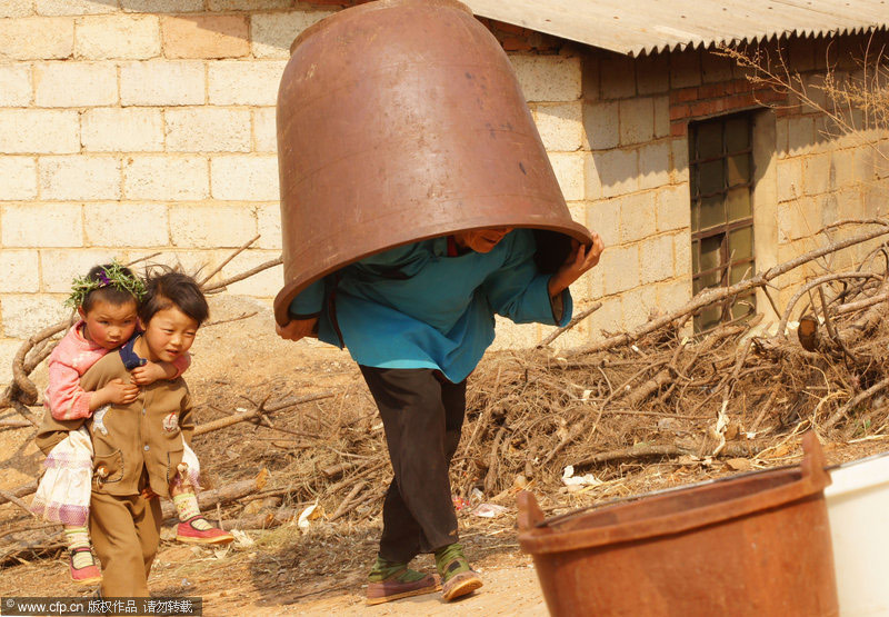 2010年3月26日,云南省尋甸縣河口鄉(xiāng),一個在云南省最早出現(xiàn)旱情的地方,現(xiàn)在很多村的水只能靠政府以及愛心企業(yè)免費送水維持生活,很多農(nóng)田絕收,并且正在影響春耕。馬健/CFP