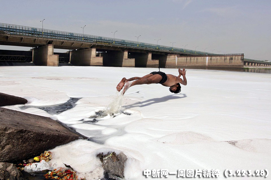 3月22日,新德里一名男子跳進遭到污染的亞穆納河。有關官員稱,工廠無視法規(guī)傾倒未經處理的污水和工業(yè)廢水,使有毒物質流入河水中。