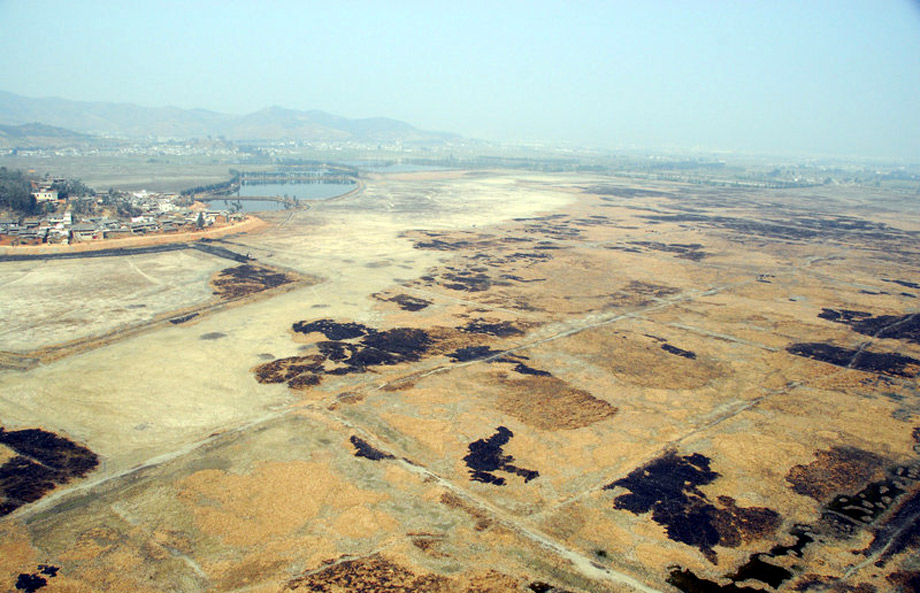圖為2010年3月27日,干涸的大理祥云縣青海湖。目前云南的旱情仍然在加重,云南省防汛抗旱指揮部的最新數(shù)據(jù)顯示,截止到3月26號全省飲水困難的人口已經(jīng)達到了828萬,比一周前增加了10多萬人口。 小 智 攝
