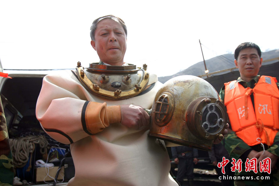4月3日,華晉焦煤公司王家?guī)X礦透水事故第七天。中午11時(shí)20分許,沖鋒舟、蛙人抵達(dá)現(xiàn)場(chǎng),他們將盡快下井展開搶險(xiǎn)工作,其中蛙人主要工作為摸清井下具體環(huán)境,以及為井下礦工輸送營養(yǎng)液,為井下礦工帶去生存的希望。圖為整裝待發(fā)的蛙人。中新社發(fā) 張?jiān)?攝
