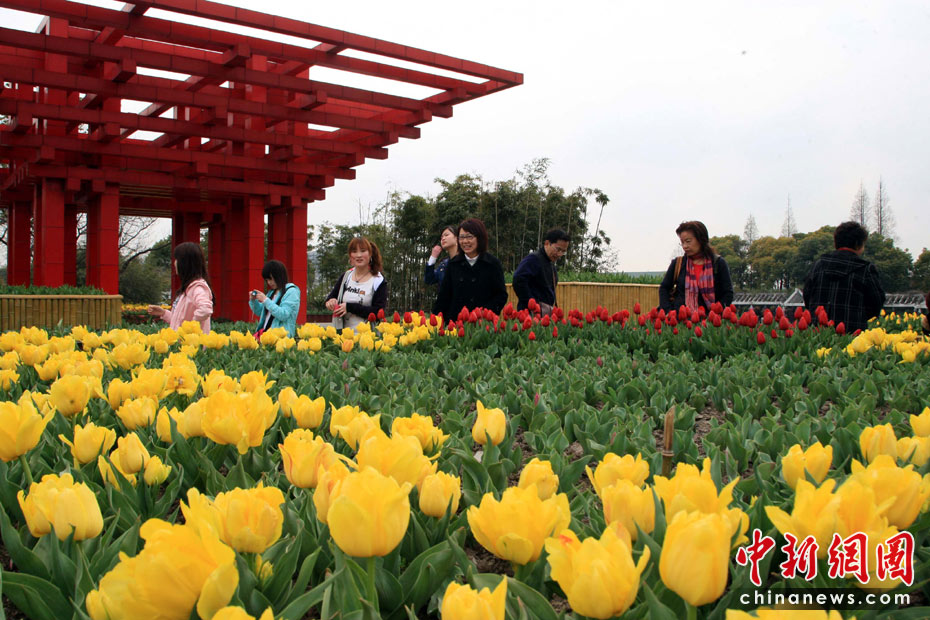 4月4日,以“世博‘卉’,匯世界花卉”為主題的2010上;ㄕ梗龜(shù)萬上海市民踏青觀賞,上海世博會中國館為主體的花卉景點,成花展最大亮點。來自13個舉辦過世博會的國家和100多個上海世博會參展國的國樹、國花齊聚花展。中新社發(fā) 潘索菲 攝