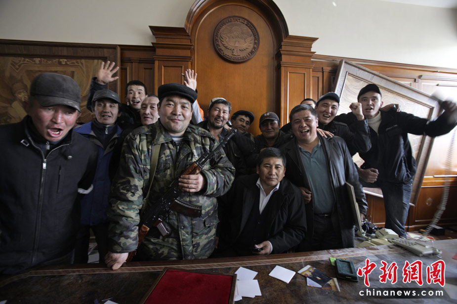 吉爾吉斯斯坦7日發(fā)生大規(guī)模騷亂,反對派示威者占領(lǐng)了議會大樓,8日,總統(tǒng)府也被示威者占領(lǐng)。圖為示威者進入總統(tǒng)巴基耶夫的內(nèi)閣會議室。