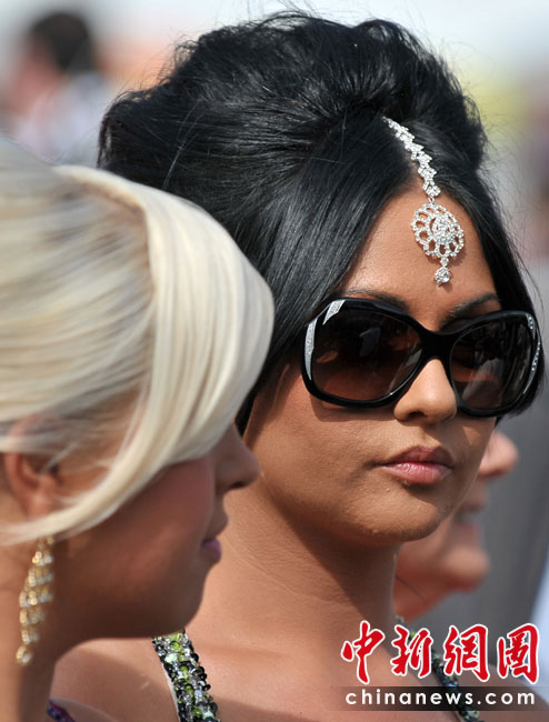 4月9日,英國(guó)安特里,女士們盛裝出席安特里賽馬場(chǎng)女士日活動(dòng)。