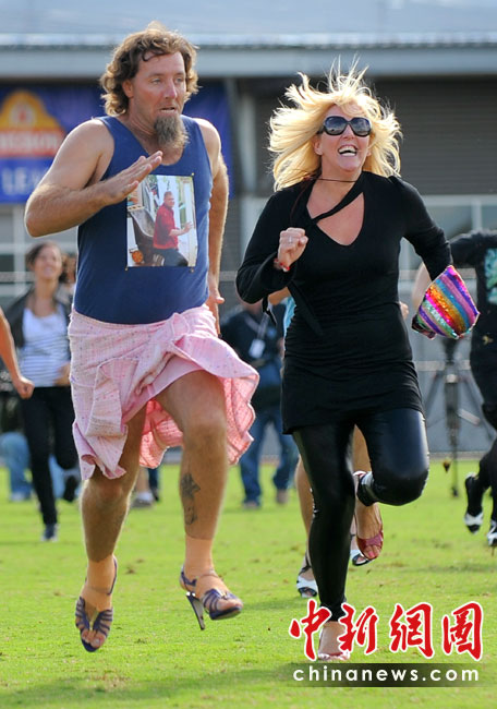 4月10日,在澳大利亞墨爾本,人們穿著高跟鞋賽跑。旨在挑戰(zhàn)多人穿高跟鞋賽跑的吉尼斯世界紀(jì)錄。盡管最終挑戰(zhàn)失敗,參賽者仍在80米的賽道上爭先恐后,各顯神通。
