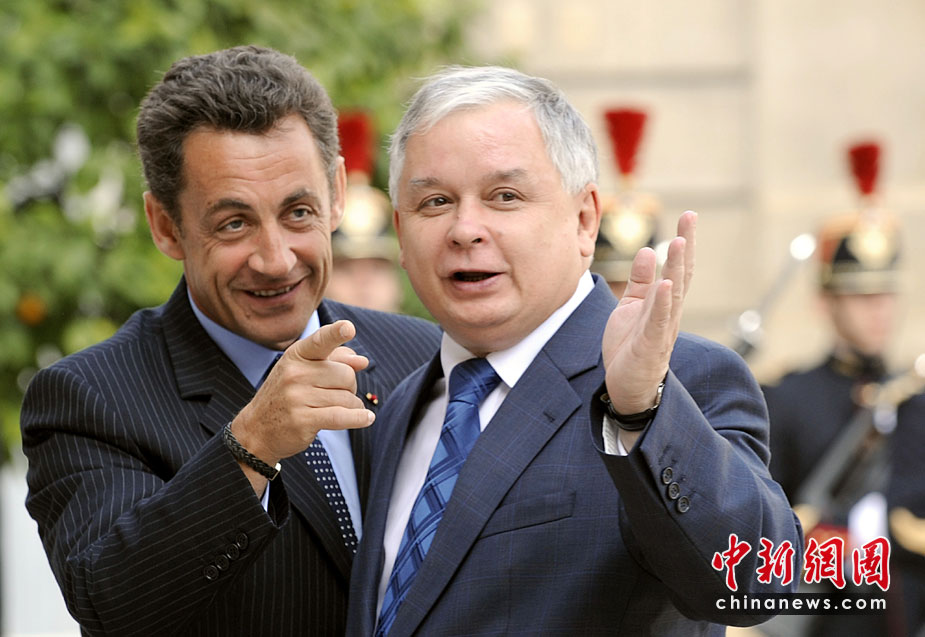 波蘭總統(tǒng)卡欽斯基乘坐的一架圖-154飛機10日在俄羅斯斯摩棱斯克州北部一軍用機場降落時失事,至少87人死亡。卡欽斯基本人被確認身亡。圖為2007年波蘭總統(tǒng)卡欽斯基與法國總統(tǒng)薩科奇。
