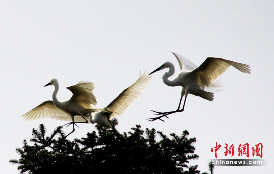 4月9日,一對(duì)白鷺在象山森林公園歡躍飛舞,譜寫一曲春日戀歌。四月,正值芳草萋萋,萬物生機(jī)勃勃。萬余只白鷺陸續(xù)抵達(dá)江西南昌象山森林公園棲息,繁衍后代,成為鄱陽湖濕地的一大獨(dú)特景觀, 吸引眾多攝影愛好者前來拍攝和觀賞。孫永勝 胡國林 攝
