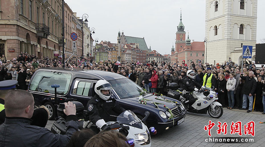 4月10日,卡欽斯基乘坐專機(jī)從華沙飛往俄羅斯斯摩棱斯克市,參加卡廷森林事件70周年紀(jì)念活動(dòng)。途中飛機(jī)在斯摩棱斯克“北方”軍用機(jī)場(chǎng)附近降落時(shí)失事,共造成包括卡欽斯基夫婦及眾多政府高官在內(nèi)的96人死亡。慘劇發(fā)生后,舉世震驚。圖為華沙市民迎接卡欽斯基“回家”。