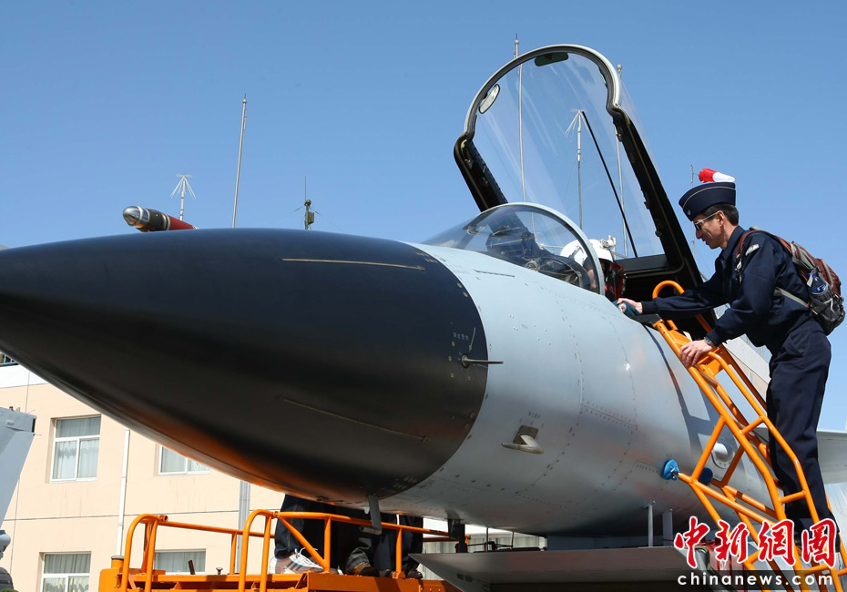 4月13日,47國(guó)駐華武官參觀了空軍航空兵某師新?lián)Q裝的殲十戰(zhàn)機(jī)飛行表演,并登上駕駛艙與飛行員零距離接觸。圖片來(lái)源:中國(guó)新聞網(wǎng)