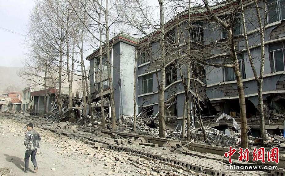 圖為4月14日,地震災(zāi)后的玉樹縣縣城結(jié)古鎮(zhèn)。中新社發(fā) 張守國 攝