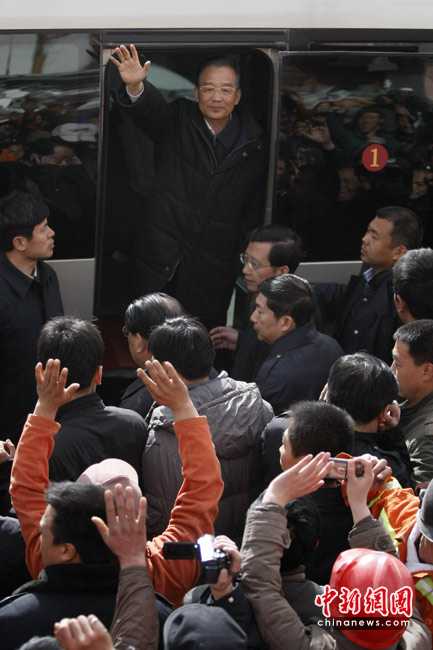 2010年4月16日,中國國務(wù)院總理溫家寶在青海省玉樹藏族自治州玉樹縣地震災(zāi)區(qū)視察救援現(xiàn)場。4月14日07時(shí)49分許,青海省玉樹藏族自治州玉樹縣(北緯33.1,東經(jīng)96.7)發(fā)生7.1級地震。中新社發(fā) 盛佳鵬 攝
