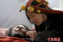 4月16日,青海玉樹民族綜合職業(yè)學(xué)校生活保障人員提取地下水飲用。中新社發(fā) 廖攀 攝