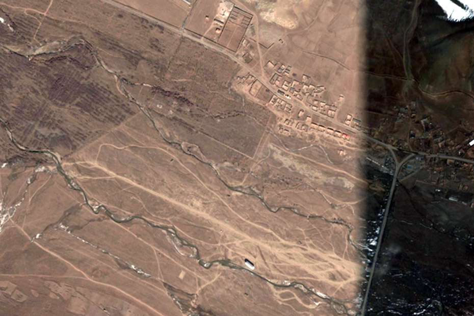 利用對(duì)地觀測中心2010年4月16日獲取的高分辨率航空遙感數(shù)據(jù),提取出玉樹州結(jié)古鎮(zhèn)城區(qū)范圍內(nèi)地震破壞最嚴(yán)重或典型地區(qū),使之與GoogleEarth中相應(yīng)位置的震前遙感衛(wèi)星數(shù)據(jù)進(jìn)行對(duì)比,直觀展現(xiàn)結(jié)古鎮(zhèn)在此次地震中的受影響程度。圖片來源:中國科學(xué)院