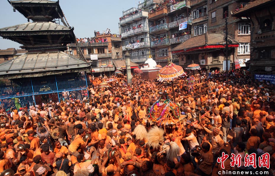 4月15日,尼泊爾迎來一年一度的傳統(tǒng)節(jié)日“尼歷新年”。當日全國放假一天,在加德滿都郊區(qū)人們涌上街頭潑灑紅粉慶祝新年。圖片來源:中國新聞網(wǎng)
