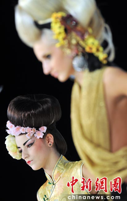 近日,第九屆“水晶天使”國際發(fā)型藝術(shù)節(jié)開幕,設(shè)計(jì)師紛紛秀出自己設(shè)計(jì)的新款發(fā)型。圖片來源:中國新聞網(wǎng)